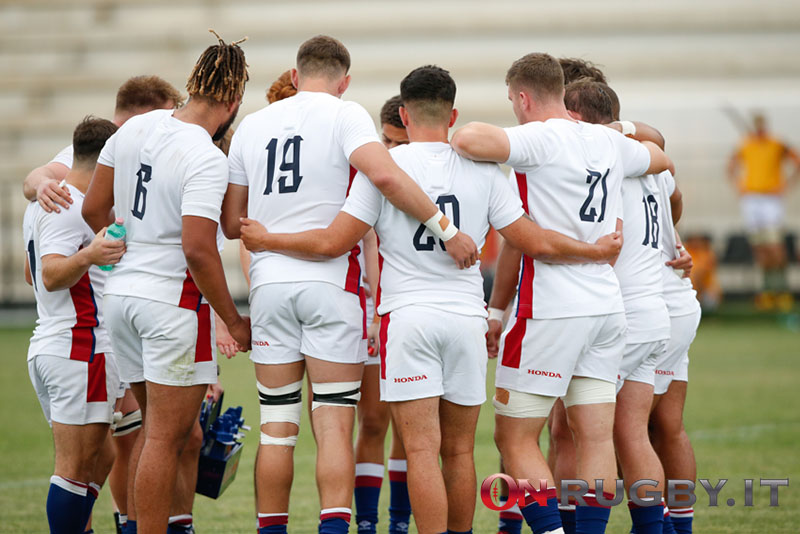 Inghilterra: 15. George Hendy (Northampton Saints), 14. Iwan Stephens (Newcastle Falcons), 13. Rekeiti Ma’asi-White (Wasps), 12. Ethan Grayson (Northampton Saints), 11. Alex Harmes (London Irish), 10. Fin Smith (Worcester Warriors), 9. Charlie Bracken (Saracens), 1. Tumy Onasanya (Sale Sharks), 2. Ollie Fletcher (Newcastle Falcons), 3. Jevaughn Warren (Saracens), 4. Ewan Richards (Bath Rugby), 5. Lewis Chessum (Leicester Tigers), 6. Ethan Staddon (Bath Rugby), 7. Emeka Ilione (Leicester Tigers) (C), 8. Toby Knight (Saracens)