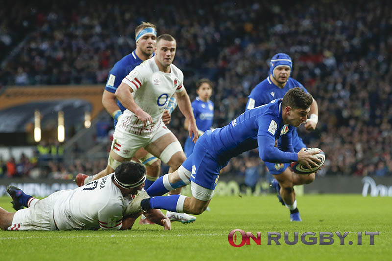 Alessandro Fusco in meta a Twickenham contro l’Inghilterra (ph. Sebastiano Pessina)