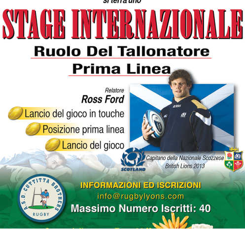 A Settimo Milanese sabato 24 maggio si terrà un’importante lezione. Ross Ford, tallonatore in forza ad Edmiburgo e con 75 caps con la maglia della Scozia e uno con i gloriosi British&Irish Lions, terrà una lezione focalizzata sul ruolo della prima linea e del tallonatore. Le lezioni si terranno dalle ore 9:30 alle ore 12:30. La lunga carriera internazionale di Ford è iniziata nel 2004 contro l’Australia. Da allora, è diventato una delle colonne portanti della mischia scozzese, giocando 40 partite nel Sei Nazioni e otto alla Coppa del Mondo.
