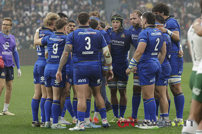 Quando l’arbitro chiamerà ‘Bassi’, le prime linee dovranno stare spalla a spalla con i propri avversari in maniera stabile, senza spingere. L’arbitro chiamerà poi la legatura e tutto il pack dovrà a quel momento essere legato e stabile e l’introduzione dovrà essere immediata. Sanzione: calcio libero.