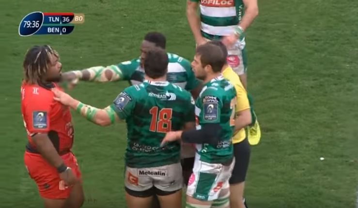 L’ultimo minuto della sfida tra Tolone e Benetton Treviso è stato animato da una scaramuccia tra Mathieu Bastareaud e Sebastian Negri, nata da un punto d’incontro in mezzo al campo. Allontanandosi l’italiano ha rimproverato qualcosa al centro francese, che ha reagito in maniera più vigorosa e ha utilizzato l’appellativo ‘fuc***g faggot’ (‘fottuto frocio’) per rivolgersi a Negri, ben udibile grazie al microfono dell’arbitro.