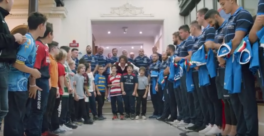 In occasione della sfida contro la Georgia, ventitré giovani ragazzi di vari club toscani hanno consegnato la maglia da gioco ai 23 azzurri impegnati sabato all’Artemio Franchi di Firenze. A presentare la cerimonia c’era Mauro Bergamasco, 106 volte azzurro nella sua carriera, che ha introdotto i bambini prima della consegna delle divise a Ghiraldini e compagni.