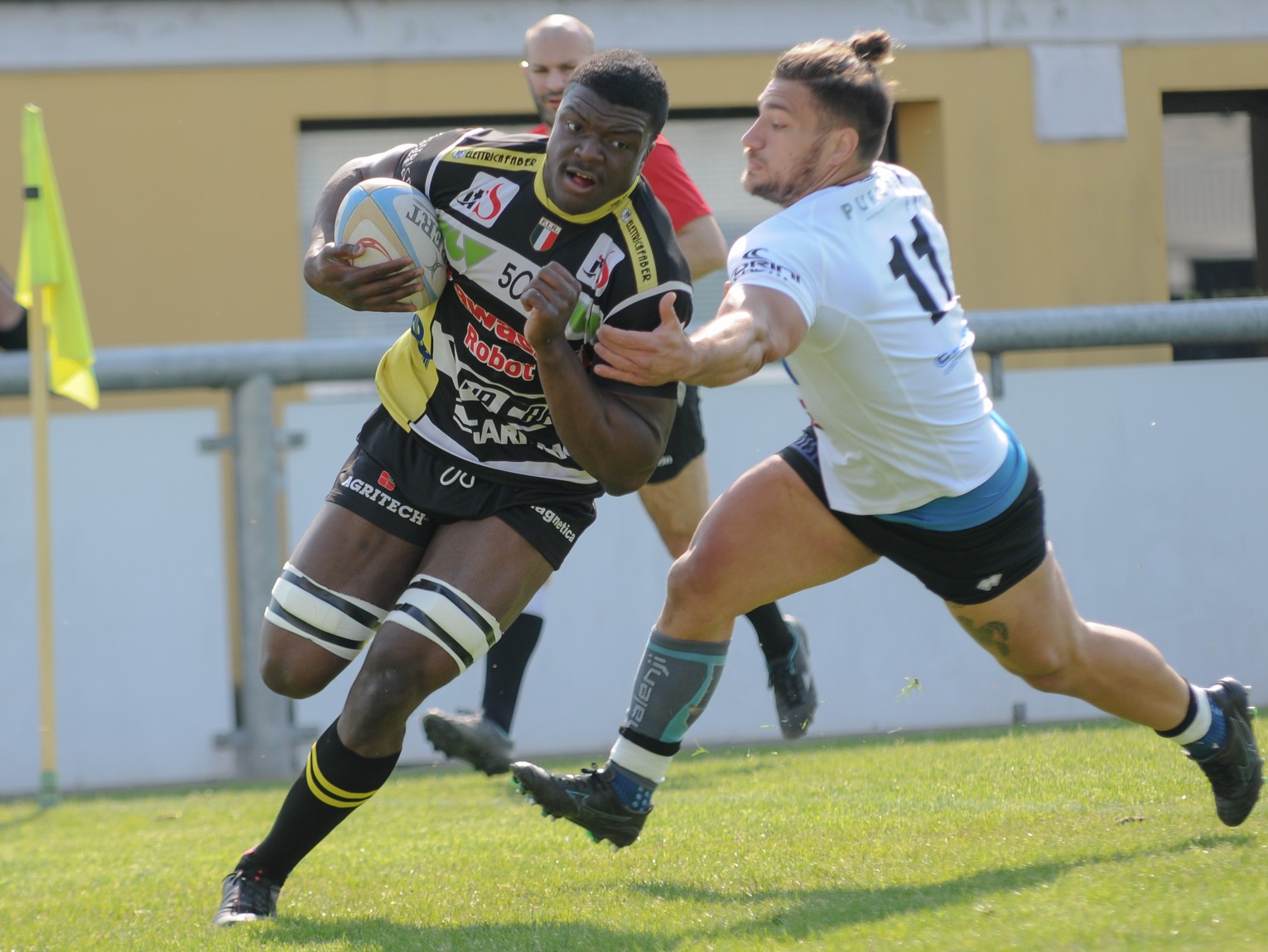 Sotto la pioggia, al San Michele, Calvisano vince lo scontro diretto contro il Valorugby, determinante per decretare la terza piazza finale nel torneo (se Rovigo dovesse vincere con Colorno la prossima settimana), con il punteggio di 22-10. Decisivi la meta in apertura di match di Izekor, in grado di sentenziare la difesa ospite – rea di un paio di placcaggi troppo morbidi – con una volata travolgente sull’out di sinistra, l’eccellente pomeriggio dalla piazzola di Schalk Hugo (6/6) e la performance solidissima in rimessa laterale di Andrea Zambonin, eletto man of the match, ricevitore principe sui lanci calvini ed incubo in difesa su quelli reggiani. Di contro, il Valorugby, soprattutto nella ripresa, in virtù dell’indisciplina bresciana, è riuscito a portarsi diverse volte nei 22 locali, vanificano però innumerevoli piattaforme d’attacco intriganti, in parte per troppi errori di imperizia gestuale palla in mano, in parte per i troppi palloni persi – o resi di bassissima qualità -proprio in touche. Reggiani rimasti attaccati nel punteggio grazie alla brillante marcatura alla 30′, con il calcio all’ala di Rodriguez per un superbo Bertaccini – sempre positivo ad ogni pallone toccato -, ed al piede di Farolini dalla piazzola, a bersaglio – al 40′ – nell’unica occasione a disposizione.