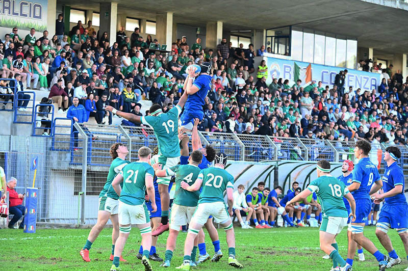 L’Italia Under 18 conquista un bella e convincente vittoria nella sfida con l’Irlanda U18 Club. Allo stadio Macrì di Cosenza, davanti a quasi duemila spettatori, gli Azzurri allenati da Alessandro Lodi si sono infatti imposti per 54 a 14.