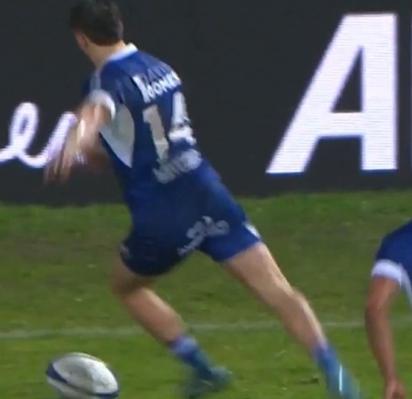 Nel tentativo di raccogliere al volo un grubber avversario, il trequarti lusitano ha visto l’ovale scappargli sotto le gambe. Da lì è scattata la pressione dei giocatori del Grenoble. Il portoghese per fare in fretta, ed evitare il possibile placcaggio dei rivali, non ci ha pensato due volte: calcio del pallone da terra, di prima intenzione, emulando quasi Cristiano Ronaldo.