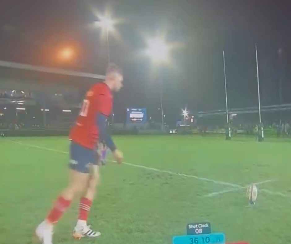 Dopo la meta di Lee Barron, il mediano d’apertura del Munster Jack Crowley ha tentato la trasformazione da posizione non facile. Nonostante la palla sembrasse chiaramente finita fuori, gli assistenti hanno assegnato i due punti aggiuntivi.