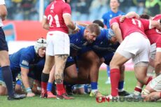 Gli avanti di Italia e Georgia si preparano ad eseguire una mischia - ph. Sebastiano Pessina