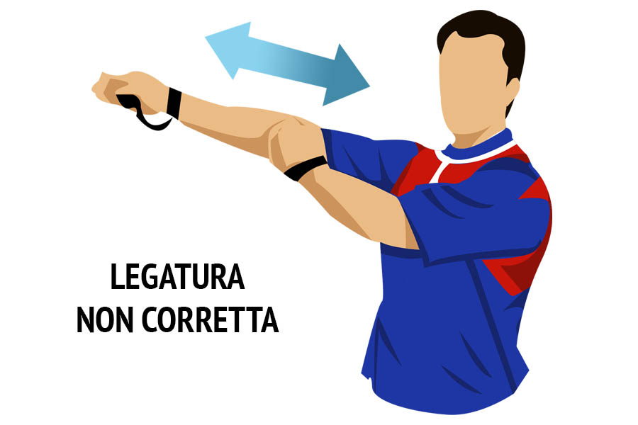 L’arbitro stende un braccio e muove su di esso l’altra mano indicando la non corretta legatura in piena estensione.