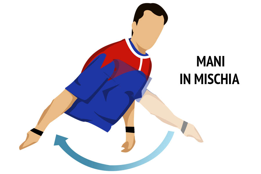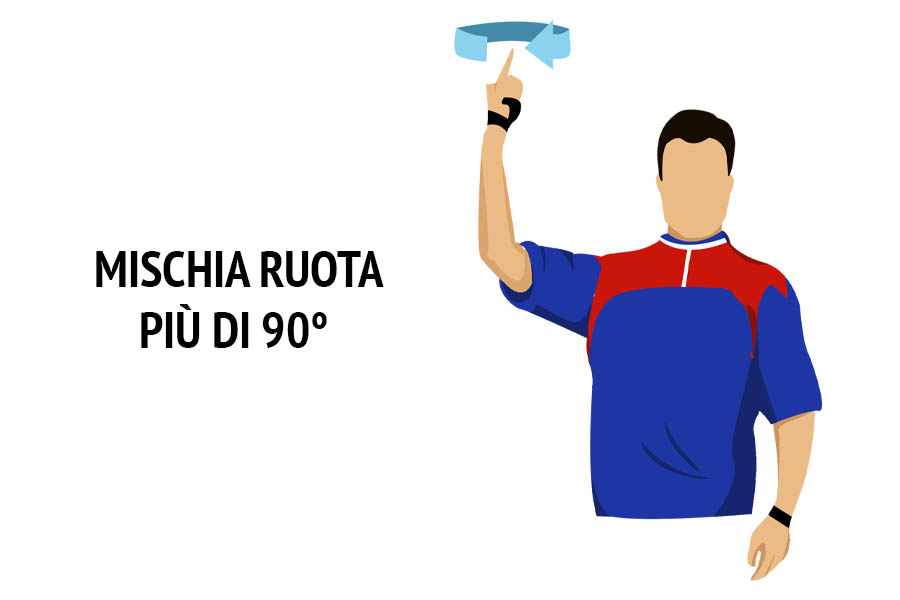 L’arbitro piega il braccio ad angolo retto verso l’alto e muove in modo circolare un dito mimando il gesto rotatorio.