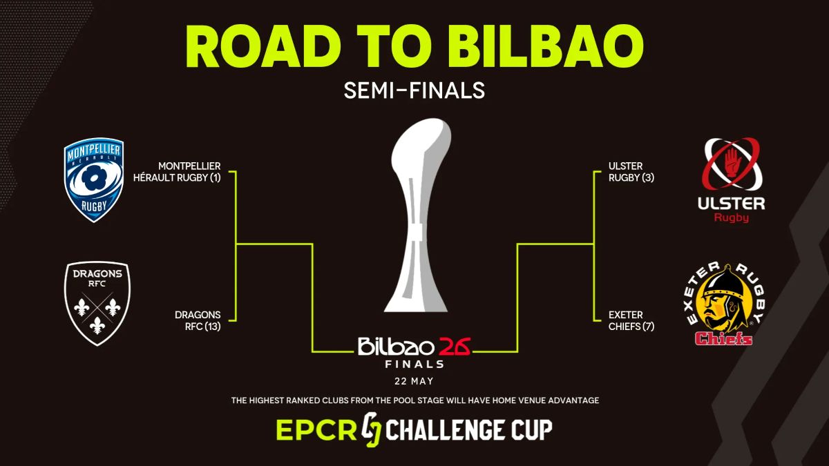 Il turno delle semifinali di Investec Champions Cup 2025/26 si giocherà tra sabato 2 maggio e domenica 3. Ad affrontarsi saranno le quattro squadre che hanno superato la tagliola dei quarti: Montpellier (francese), Ulster (irlandese), Exeter Chiefs (inglese) e Dragons (gallese).