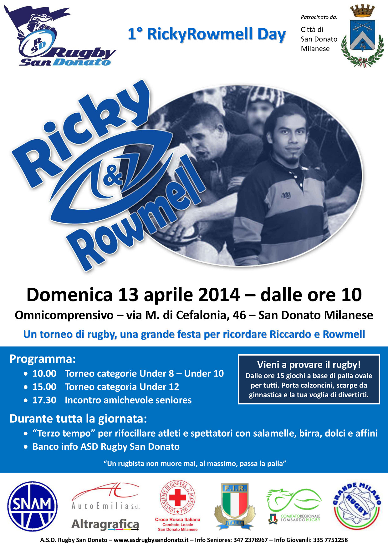 Domenica 13 aprile presso il campo sportivo dell'Omnicomprensivo di San Donato Milanese, si svolgerà la prima edizione del Memorial "RickyRowmell Day"
