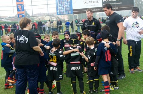 La donna più veloce d’Italia in gara al “Comunale” con i bambini di Mirano, nell’intervallo della IV^ giornata del Campionato di Serie B di rugby.