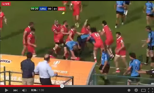 Vittoria per i georgiani per 46 a 12, ma soprattutto una rissa da tre cartellini rossi e cinque gialli