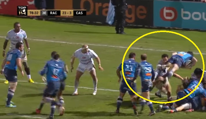 Racing 92-Castres e la meta con salto della ruck