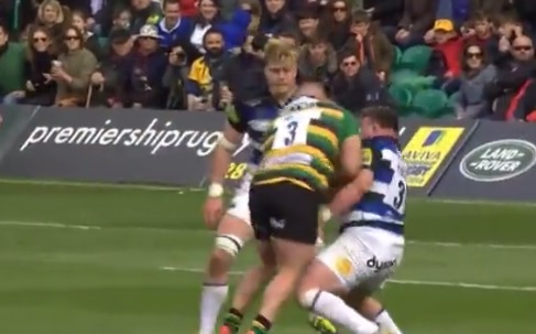 Succede durante la partita di Premiership tra Nortampton e Bath. Protagonisti David Wilson e Kieran Brookes.