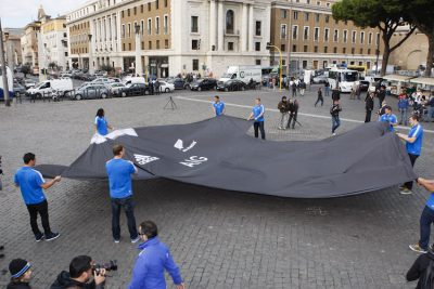 Una maglia nera gigante, a metà strada tra Piazza San Pietro e Castel Sant'Angelo. Tra decine di curiosi, tifosi e appassionati