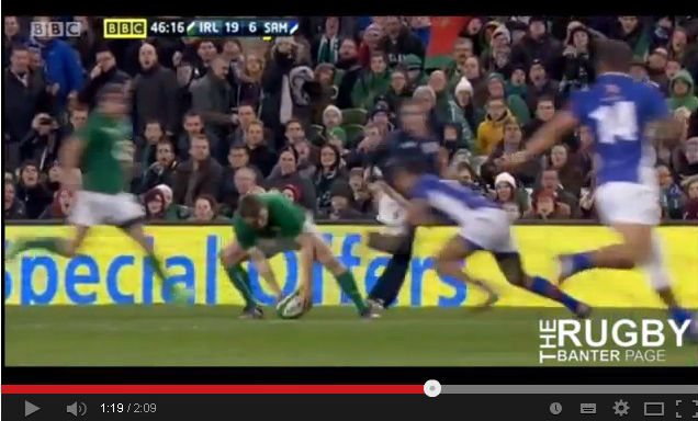 Nella meta irlandese contro Samoa di sabato marcata da Sean O'Brien c'è un "dettaglio" da funambolo di Brian O'Driscoll