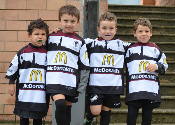 Azioni di gioco, mischie e touches in piazza Tolomei e nei campi del minirugby