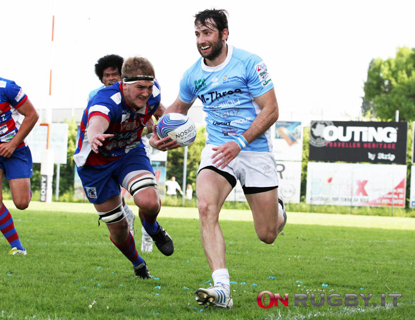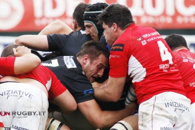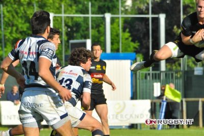 Il mediano di mischia delle Fiamme Oro batte Alberto Lucchese (Mogliano) e il capitano de L'Aquila Maurizio Zaffiri