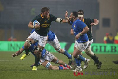 Gli azzurri ci provano e giocano a viso aperto, ma gli Springboks dilagano nella ripresa dopo il rosso a Lovotti