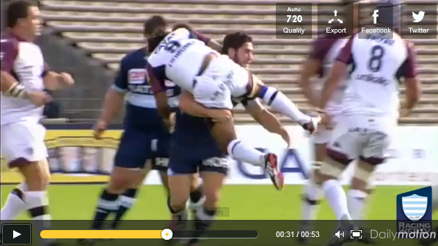 Il mediano di mischia del Racing Metro durante la gara contro il Bordeaux di Top 14 ferma Heini Adams e se lo porta in giro...