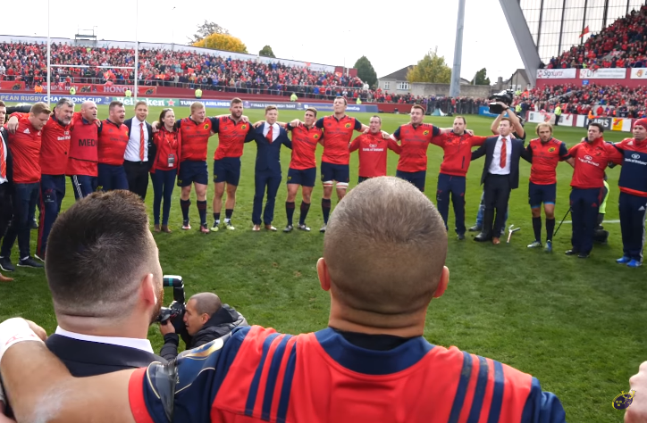 Indimenticabile giornata quella di sabato 22 ottobre a Limerick, dove il popolo Munster ha reso omaggio a coach Foley deceduto la scorsa settimana. Al termine della sfida vinta contro Glasgow i giocatori hanno cantato il proprio inno “Stand Up And Fight” coinvolgendo nel cerchio Tony e Dan, figli di Anthony Foley.