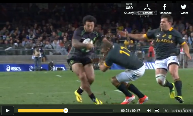Non un gigante, ma comunque stiamo parlando di qualcosa come 90 chili di muscoli su 180 centimetri di altezza capaci di grande potenza esplosiva e velocità. Ecco, Bryan Habana, viene travolto come se nulla fosse da Rene Range nella partita che ha opposto la selezione World XV al Sudafrica lo scorso sabato a Cape Town…