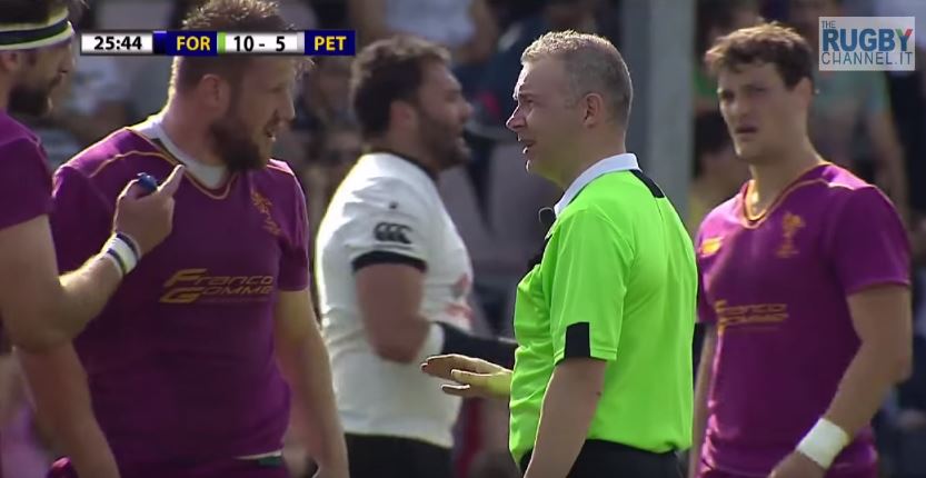 Nella semifinale tra Fiamme Oro e Petrarca, l'arbitro italiano si è reso protagonista di un simpatico siparietto