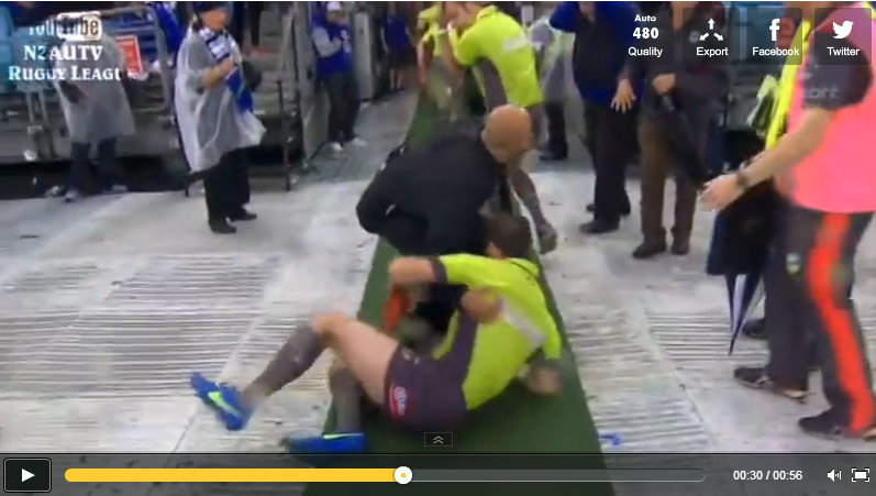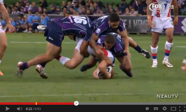 In tre contro uno durante una gara di NRL. Il placcaggio e poi la caduta. Qui trovate il video dell'intervento