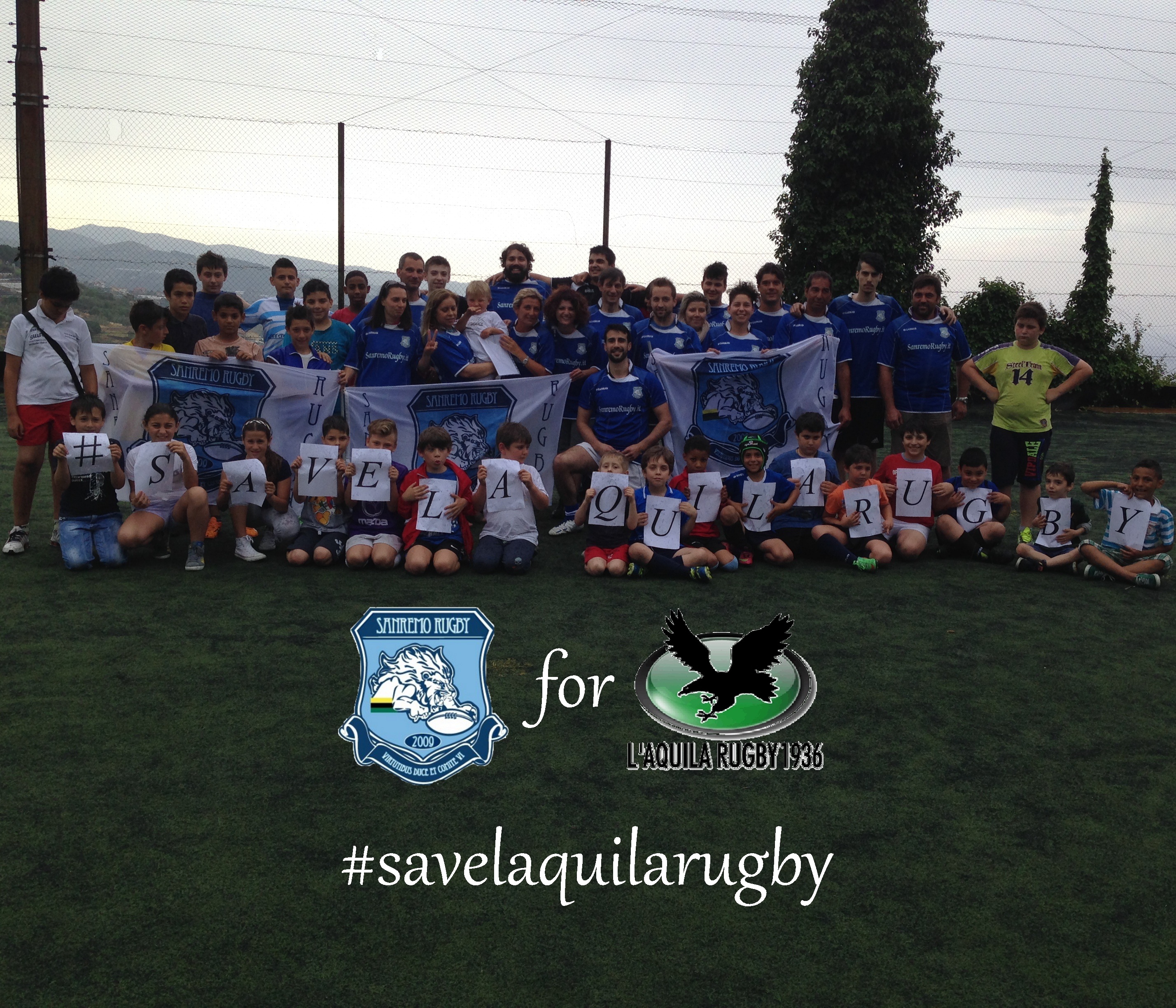 I ragazzi Sanremesi hanno colto l'iniziativa promossa dagli amici Aquilani con grande entusiasmo, diffondendo la campagna di sensibilizzazione #savelaquilarugby